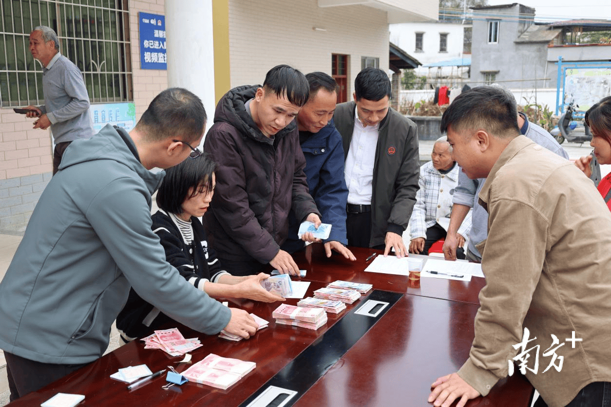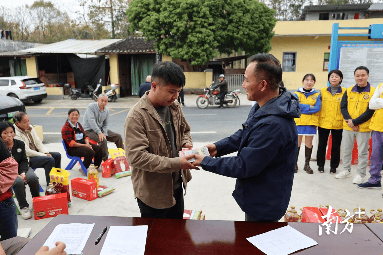镇党委书记张捷、驻镇帮镇扶村工作队队长郑章树与大陂头村村民齐聚一堂。江绮雯 摄