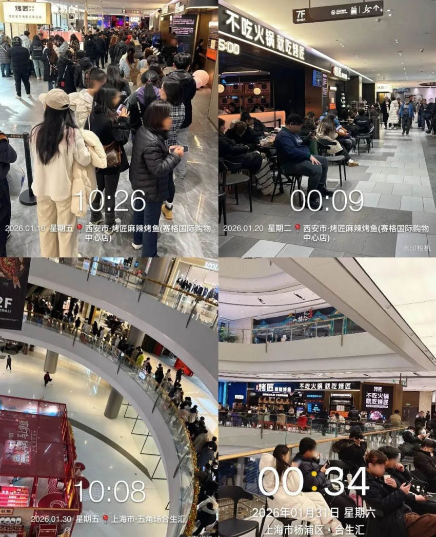 据《21世纪经济报道》,2025年12月31日当天,寿司郎在北京一家门店排队达3000桌。最近串小白烧烤深圳首店开业,排队超1000号是常态。烤匠的排队情况更加“极致”,据了解,1月31日烤匠上海首店开业的第二天,全天取号排队超6300桌,截至凌晨0:40还需要等位超4100桌,顾客最晚排队至凌晨5:00进店用餐,最长等位时长超15小时。